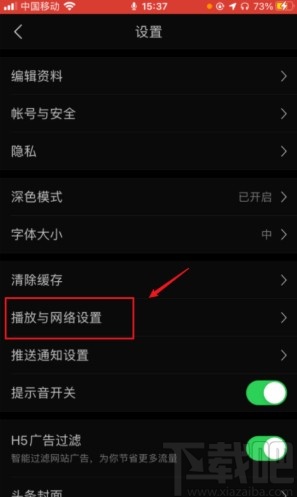 2.点击进入到应用的设置界面之后,在界面的设置选项中,找到“播放与网络设置”这个选项,然后点击进入到其中。