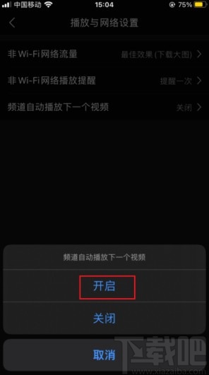 4.点击这个功能之后手机界面下方会出现一些设置选项,我们点击其中的开启这个选项就可以成功开启这个自动播放下一个视频的功能了。