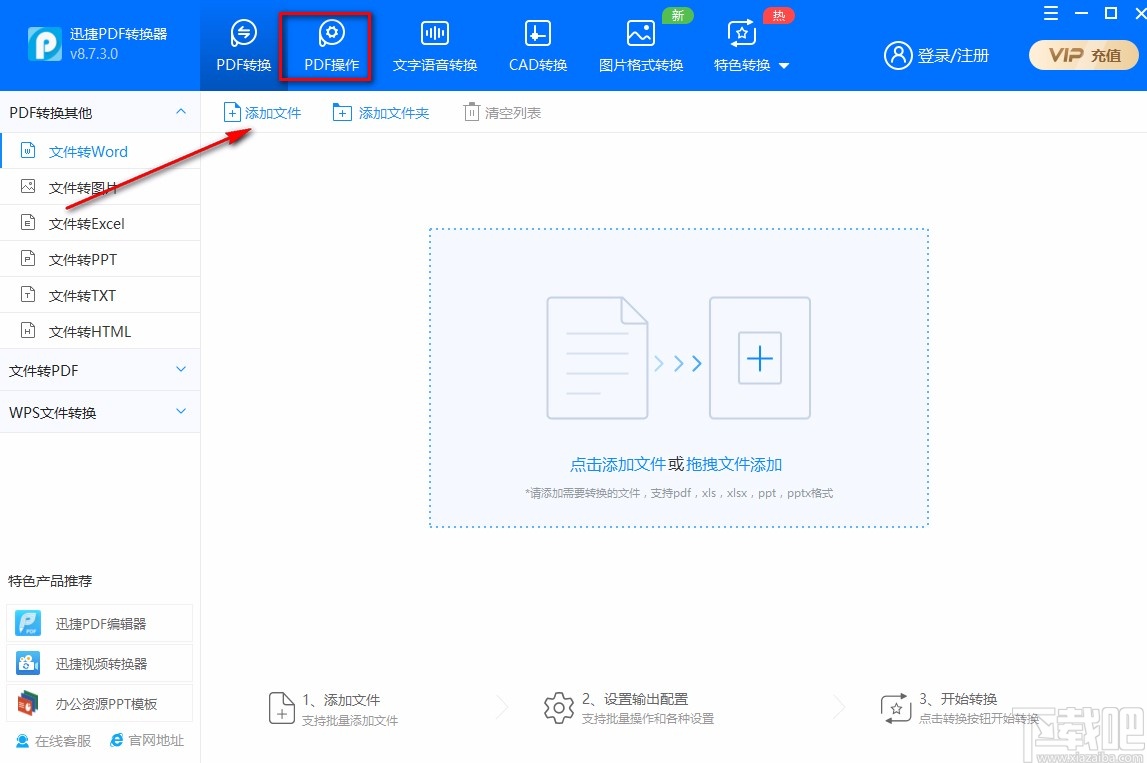 1.首先打开软件,我们在界面上方找到“PDF操作”选项,点击该选项再进行下一步操作。