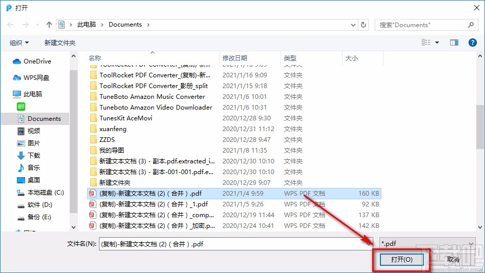 3.在文件添加页面中,我们将需要加密的PDF文件选中,再点击界面右下角的“打开”按钮就可以了。