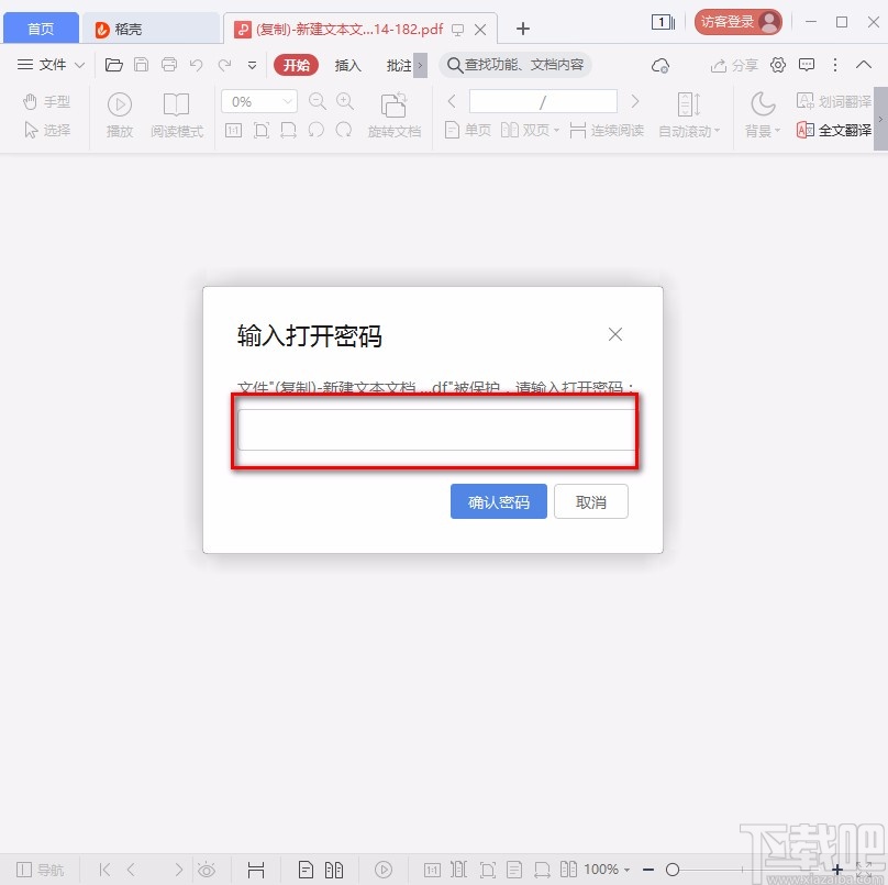 10.最后我们再次打开加密后的PDF文件,这时候界面上会出现一个密码窗口,我们需要在窗口中输入正确的密码,并点击“确认密码”按钮,才能打开PDF文件。