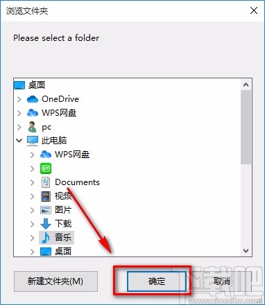 6.接下来在浏览文件夹窗口中,我们选中文件的保存位置后,再点击窗口底部的“确定”按钮就可以了。