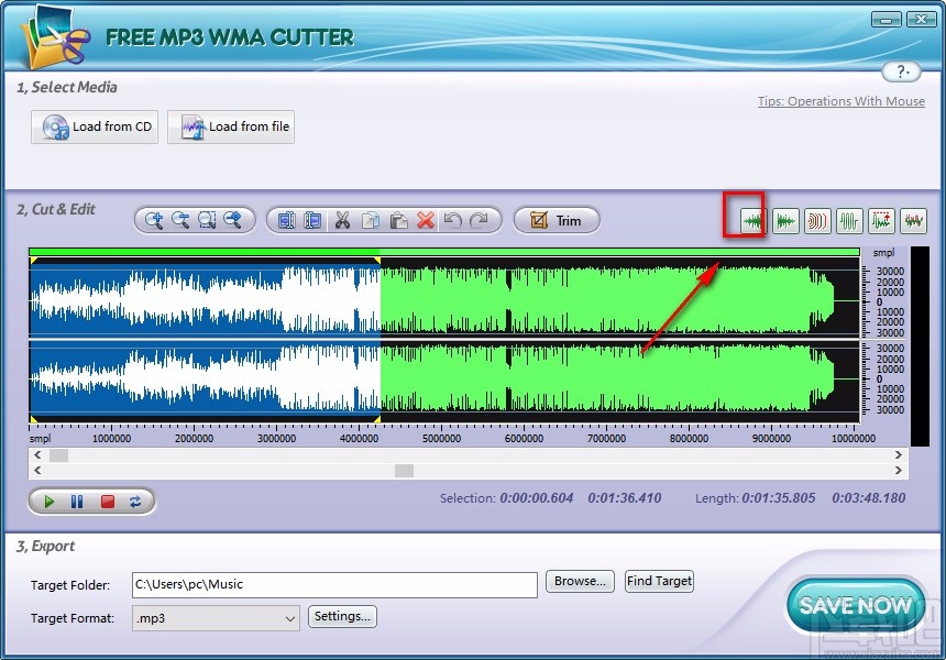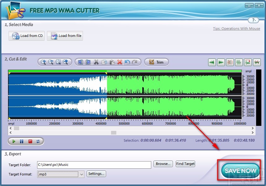 8.完成以上所有步骤后,我们在界面右下角找到“SAVE NOW”按钮,点击该按钮就可以开始给音频添加淡入效果,并将其保存在指定文件夹中。