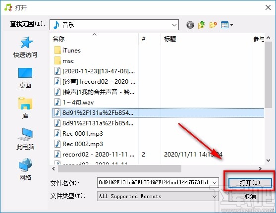 2.在文件添加页面中,我们选中需要添加淡入效果的音频文件,再点击页面右下角的“打开”按钮就可以了。