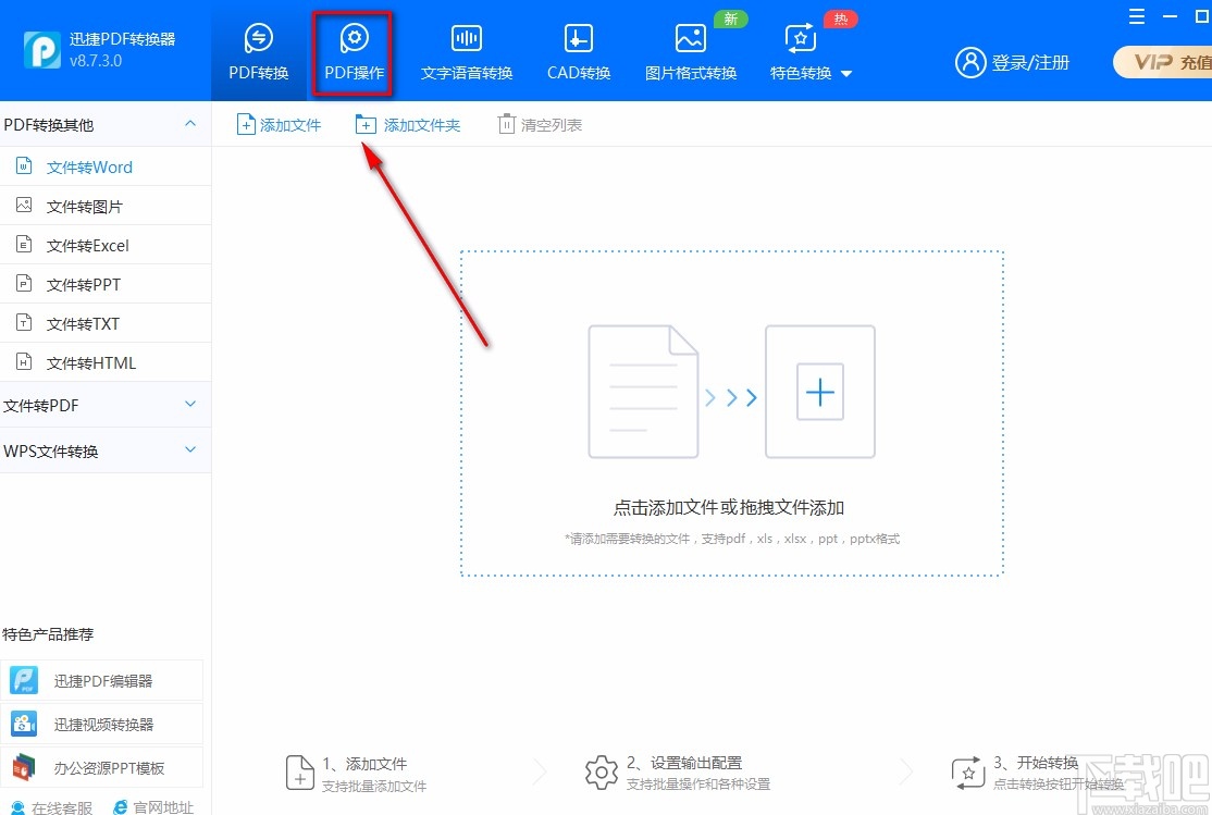 1.首先打开软件,我们在界面上方找到“PDF操作”选项,点击该选项,界面上就会出现相应的操作选项。
