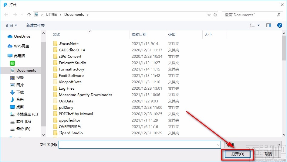 3.然后就会进入到文件添加页面,我们在页面中将需要提取图片的PDF文件选中,再点击页面右下角的“打开”按钮就可以了。