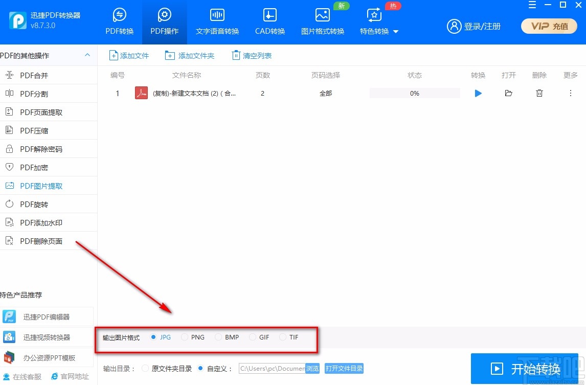 4.将文件添加到软件后,我们在界面下方找到“输出图片格式”选项,根据自己的需要在其后面选择图片格式即可。