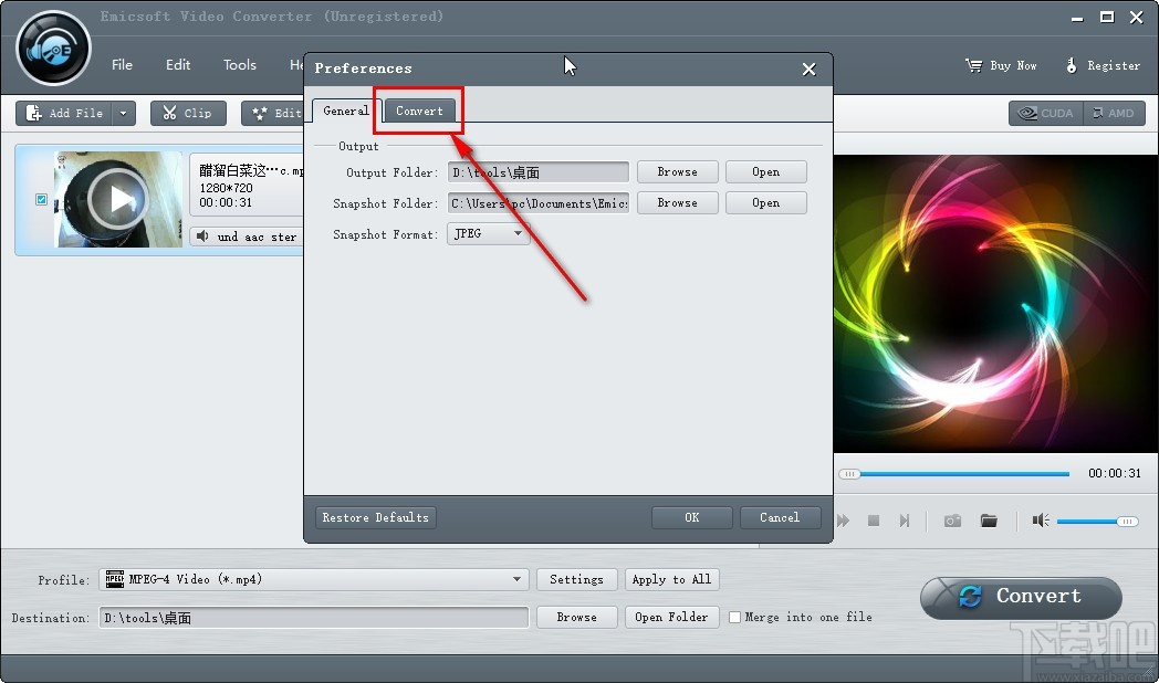 4.点击打开这个选项之后,我们在出现的选项设置界面中,找到Convert这个转换选项,点击切换到转换界面当中。