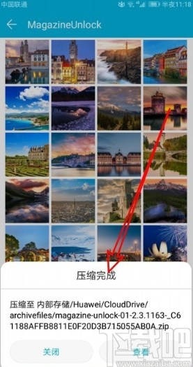 5.点击压缩开始压缩之后,等待压缩完成就会在手机界面下方出现一个压缩完成的提示窗口,点击其中的查看按钮可以跳转到查看压缩文件的界面。