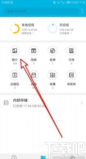 2.点击进入到这个文件管理界面之后,在界面中找到想要压缩的文件类型,比如想要压缩的文件是图片,然后就点击进入到图片这个类型。