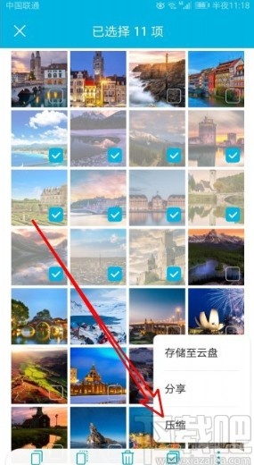 4.点击更多之后,接下来在出现的菜单中点击压缩这个选项,点击之后即可准备开始压缩选中的这些文件。