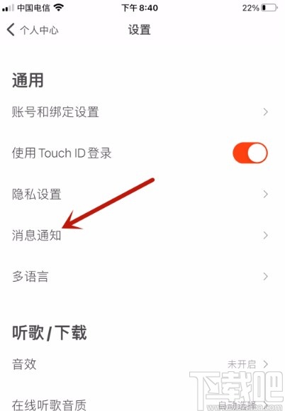 4.接下来在设置页面中,我们在页面上找到“消息通知”选项 ,点击该选项就能进入到消息通知页面。
