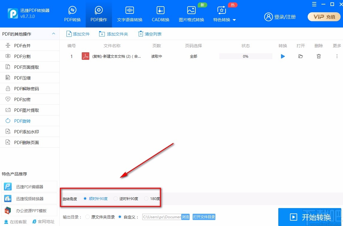 迅捷PDF转换器是一款非常实用的PDF格式转换以及编辑处理软件,该软件界面直观友好,可以帮助用户将PDF与其他多种文件格式相互转换,同时还能对PDF文件进行压缩、页面提取、合并分割等操作。我们在日常生活中常常会收到PDF文件,但是在接收到的PDF文件中,有的文件页面角度是不正常的,这会影响我们观看文档内容,在这种情况,就可以使用这款软件来旋转PDF文件。那么接下来小编就给大家详细介绍一下迅捷PDF转换器旋转PDF的具体操作方法,有需要的朋友可以看一看并收藏起来。