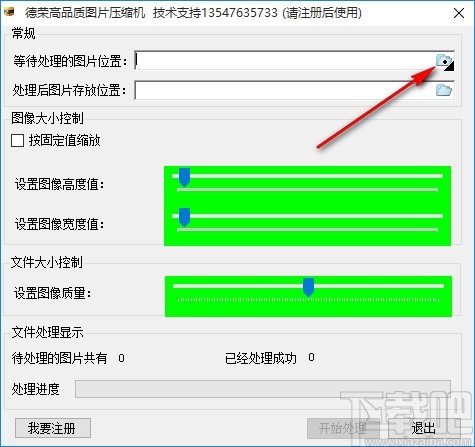 1.首先第一步我们打开软件之后,在等待处理的图片位置选项右边,找到文件夹图标之后点击它准备选择想要处理的图片。
