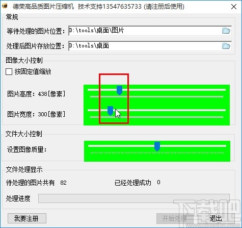 5.点击这个确定按钮设置好这些输出保存路径和文件路径之后,可以在图片高度和图片宽度这两个选项中,根据自己的需求点击滑块进行调整。