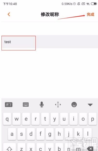 7.最后在修改昵称页面中,我们在文本框中输入昵称后,再点击页面右上角的“完成”按钮就可以了。
