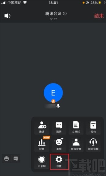 4.点击这个进入会议按钮之后成功创建会议,接着点击右下角的菜单图标,在打开的菜单界面中点击设置按钮,如下图中所示。