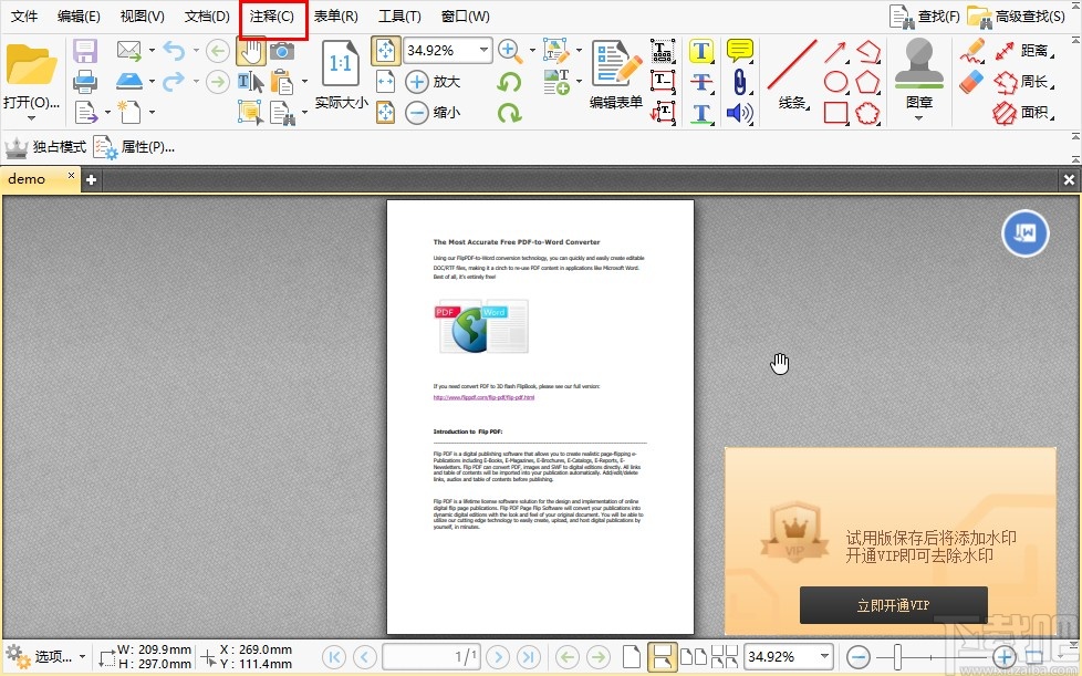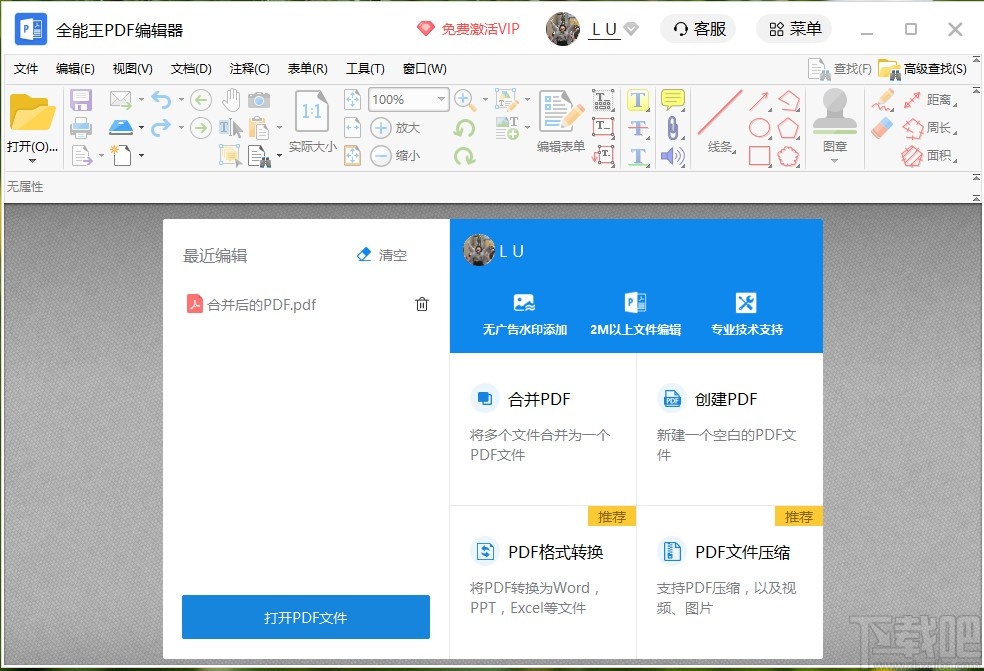 3.点击右下角的这个打开按钮之后,我们在软件界面中可以看到打开的PDF文件,然后下一步点击上方的注释这个功能选项。