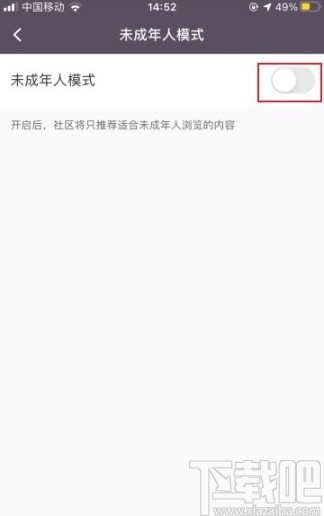4.最后在未成年人模式界面,找到他右边的开关,将这个功能打开就可以开启未成年人模式了,如下图中所示。