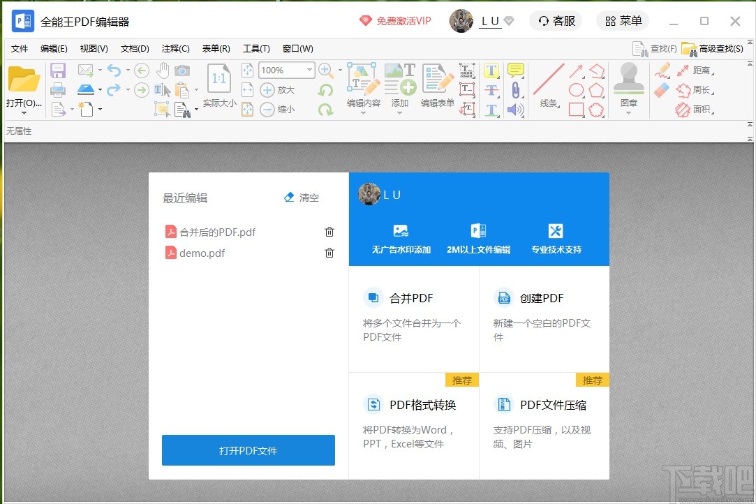1.首先第一步我们打开软件之后,在软件界面的左上方找到打开这个按钮,点击之后准备打开想要添加水印的PDF文件。