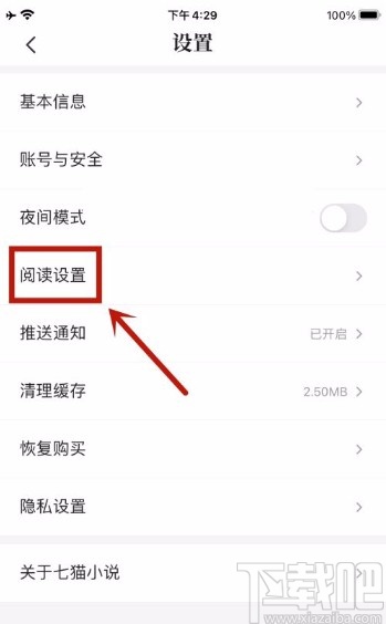 3.然后在设置页面中,我们在页面上找到“阅读设置”选项,点击该选项再进行下一步操作。