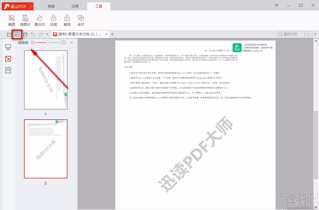 6.完成以上所有步骤后,我们在界面左上方找到保存按钮,点击该按钮就可以将加密后的文件保存在原文件夹中。