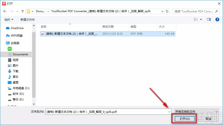 2.接着在文件添加页面中,我们将需要进行加密操作的PDF文件选中,再点击页面右下角的“打开”按钮就可以了。