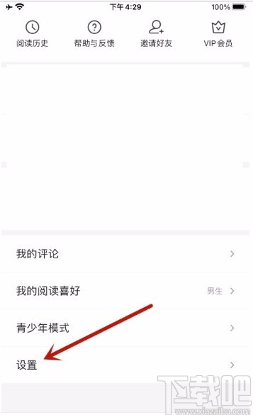 3.接着在我的页面中,我们在页面上找到“设置”选项,点击该选项就可以进入到设置页面,如下图所示。