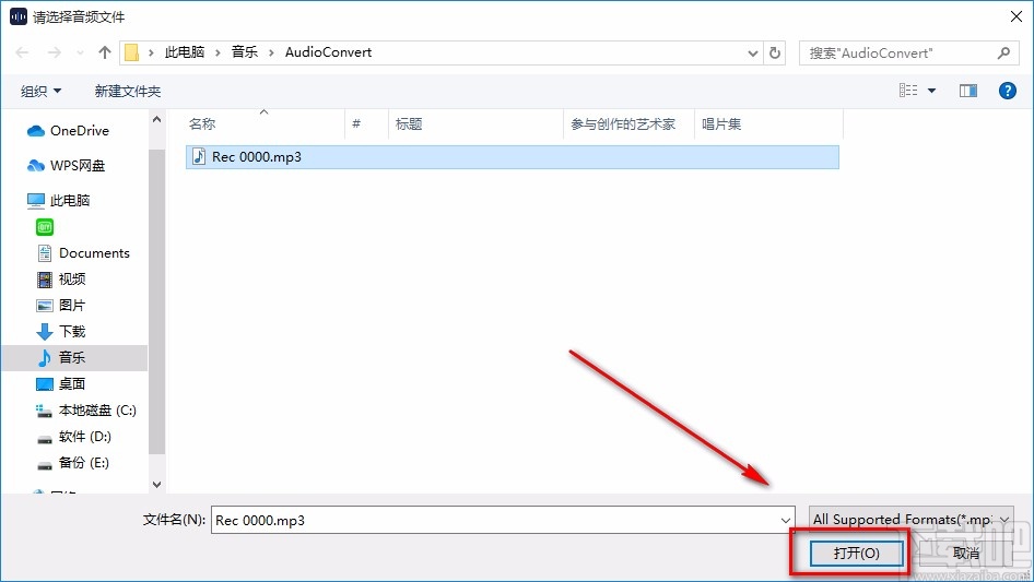 3.在文件添加页面中,我们选中需要变速的音频文件,再点击页面右下角的“打开”按钮就可以了。