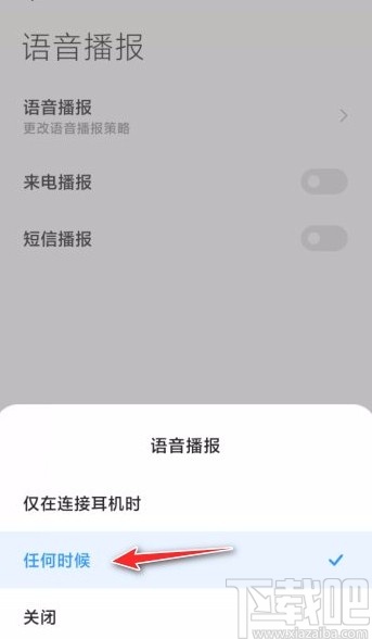 6.然后在界面下方就会出现一个语音播报窗口,我们在窗口中找到“任何时候”并点击就可以了。