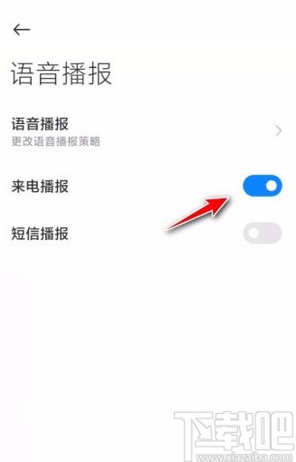 7.完成以上所有步骤后,我们在界面上找到“来电播报”选项,点击该选项后面的开关按钮将其打开,就成功开启来电语音播报功能了。