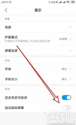 3.下一步进入到显示设置界面之后,找到界面中的“自动旋转屏幕”这个功能,然后点击它右边的开关。