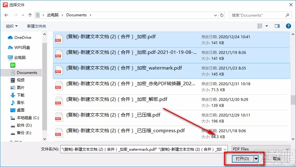 5.接下来在文件添加页面中,我们将需要合并的PDF文件选中,再点击页面右下角的“打开”按钮就可以了。