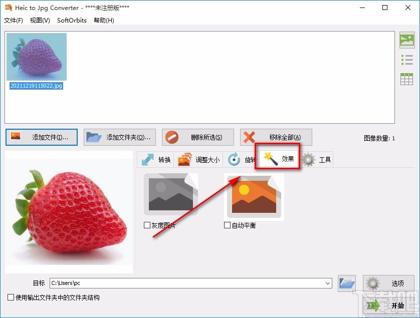 Heic to Jpg Converter是一款小巧实用的图片编辑处理软件,该软件界面简单直观、功能齐全,支持多种图片格式进行相互转换,同时还能对图片进行调整大小、旋转、添加效果等操作。在日常生活中,我们在网络上常常会看到一些灰度化的图片,这类图片能够给用户带来不一样的感受,因此有很多朋友也想制作这样的图片。鉴于很多朋友刚刚入手这款软件,不知道怎么操作。那么接下来小编就给大家详细介绍一下Heic to Jpg Converter使图片变灰的具体操作方法,有需要的朋友可以看一看。