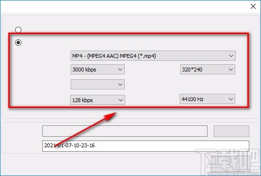 6.在参数设置窗口中,我们点击左上方的第二个小圆,并在窗口中对视频格式、分辨率等参数进行设置。