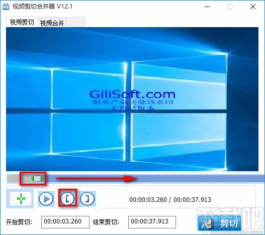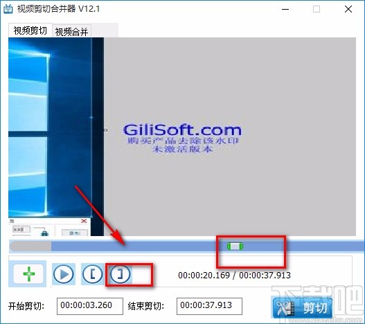 4.接着继续将光标向左移动使其到视频剪切的结束位置,这时候再点击进度条下方的终点按钮即可。