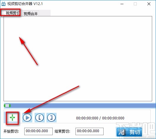 1.首先打开软件,我们点击界面左上角的“视频剪切”按钮,再点击界面左下角的“加号”图标按钮即可。