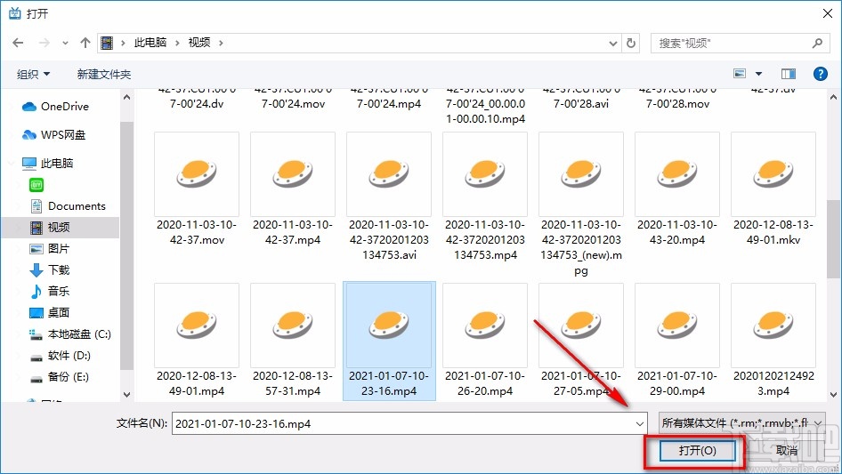 2.然后就会进入到文件添加页面,我们在页面中将需要进行剪切操作的视频选中,再点击页面右下角的“打开”按钮就可以了。