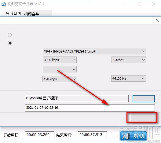 5.接下来在界面右下角找到“剪切”按钮,我们点击该按钮,界面上就会出现一个参数设置窗口。