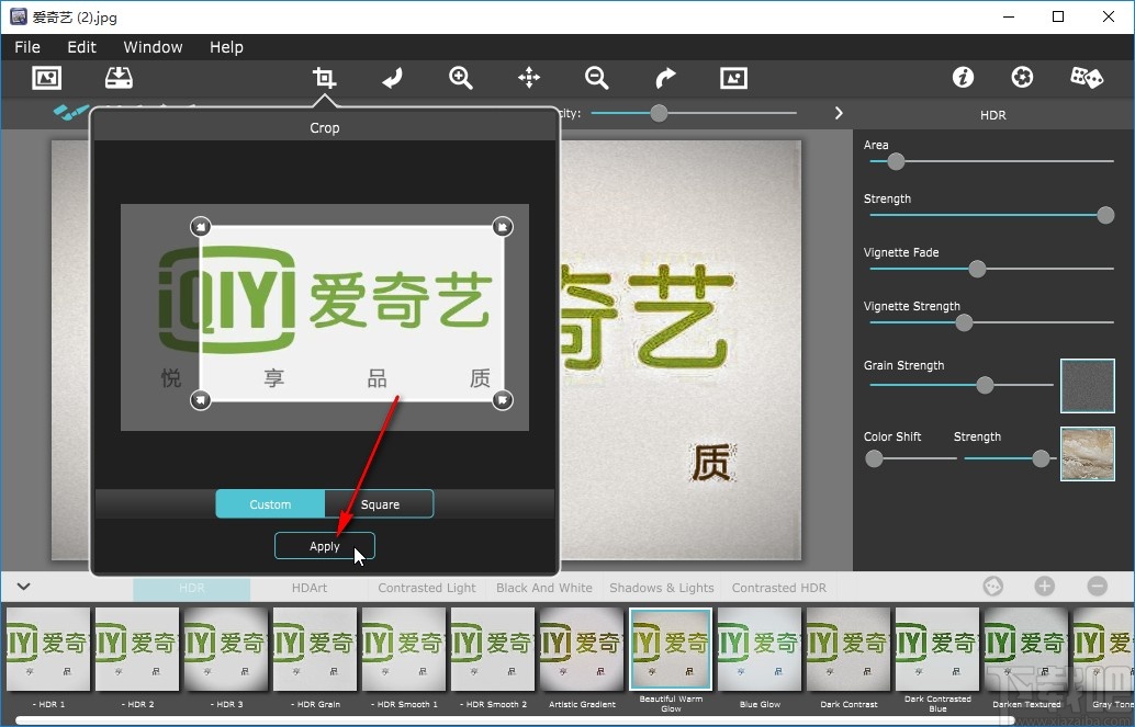 5.根据自己的需求调整好想要的大小尺寸之后,我们点击下方的Apply这个应用按钮之后就可以应用裁剪图片的操作了。