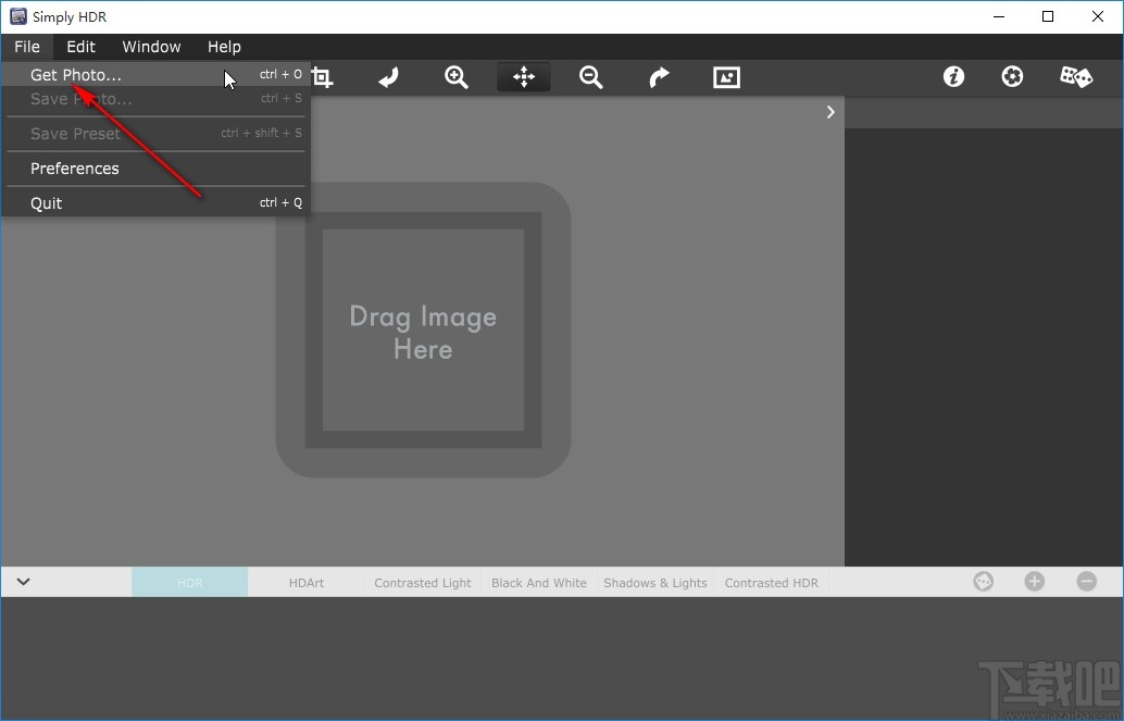 1.首先第一步我们打开软件之后,在界面左上角点击File选项之后,在打开的列表中选择Get Photo这个选项,准备选择文件。