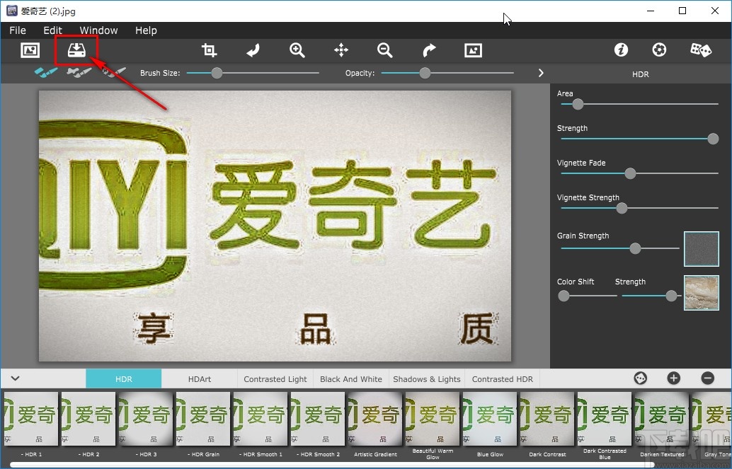 6.最后图片裁剪之后在软件主界面可以看到效果,如下图中所示,点击界面左上角的下载图标,如下图中所示,点击之后即可将裁剪之后的图片保存下来。