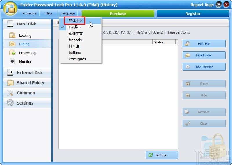 使用上述教程中的操作方法我们就可以在ThunderSoft Folder Password Lock这款软件中设置 中文界面了,感兴趣的朋友不妨试一试这个方法,希望这篇教程能帮到大家。
