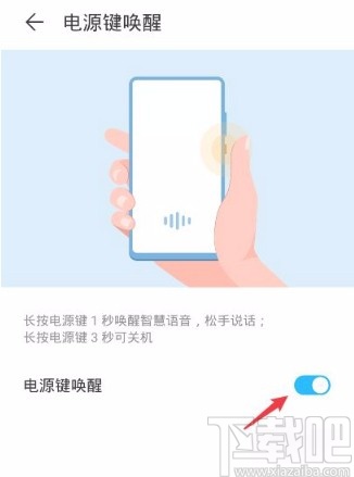 6.最后再按照第四步的方法,在“智慧语音”页面中点击“电源键唤醒”选项进入到电源键唤醒页面,在页面上找到“电源键唤醒”选项,点击其后面的开关按钮使其处于关闭状态,就可以成功关闭智慧语音助手了。