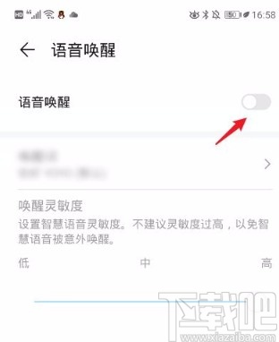 5.在语音唤醒页面中,我们在页面上找到“语音唤醒”选项,点击其后面的开关按钮,使其处于关闭状态。