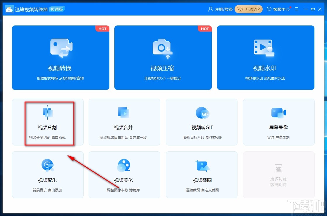 1.首先打开软件,我们在界面上找到“视频分割”选项并点击,就可以进入到视频分割页面。