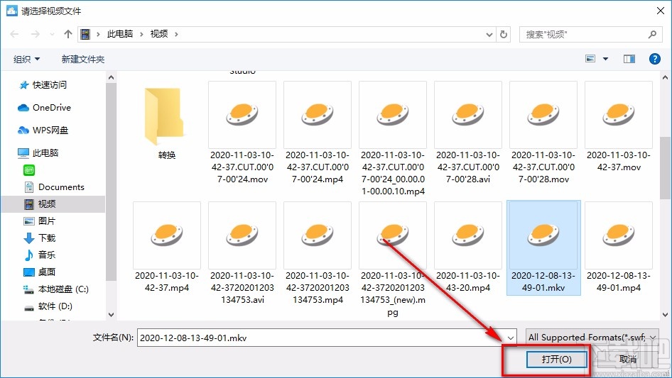 3.在文件添加页面中,我们将需要裁剪画面的视频选中,再点击页面右下角的“打开”按钮就可以了。