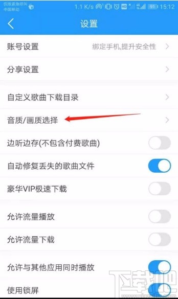 4.接下来在设置页面中,我们在页面上找到“音质/画质选择”选项,点击该选项就能进入到音质/画质选择页面。