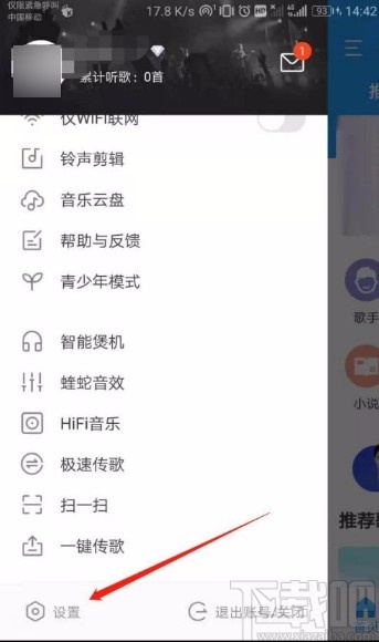 3.然后在界面左侧就会出现一个菜单窗口,我们在窗口左下角找到“设置”按钮并点击,就可以跳转到设置页面。