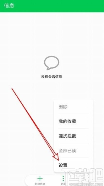 2.进入到这个信息主界面之后,找到界面下方的更多这个选项,点击之后在出现的菜单列表中点击设置这个选项。